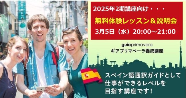 当協会の野外研修は、実際にスペイン語の通訳ガイド・アシスタントとして順路や説明ポイントを検証する実践的な研修で人気です。当日は無料体験に参加できます。ぜひ、この機会に参加されてみませんか??