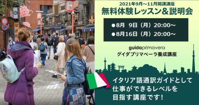 東京 第四期 グイダプリマベーラ養成イタリア語講座 説明会&無料体験レッスン のお知らせ