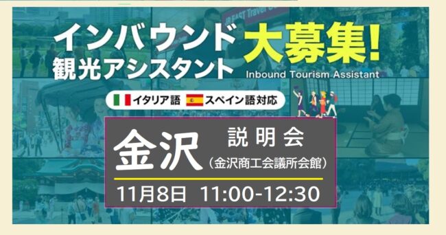 場所は、一般社団法人日本ツーリストガイド・アシスタント協会(麻布十番駅から徒歩5分)港区麻布十番2-14-6 イイダビル4階になります。