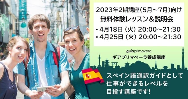 ギアプリマベーラとは、スペイン語で観光ガイド・アシスタント・ボランティアを行うための知識、技術を持っている人のこと。